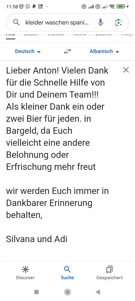 Aber die beste Nachricht ist, das Anton, unser liebgewonnenen albanischer Mechaniker das ganze für nur 160 Euro realisiert. Für diesen Betrag hätte man den Wagen in Deutschland wahrscheinlich nicht einmal auf die Hebebühne gefahren und hier holt man uns sogar dafür auch noch vom Hotel ab.