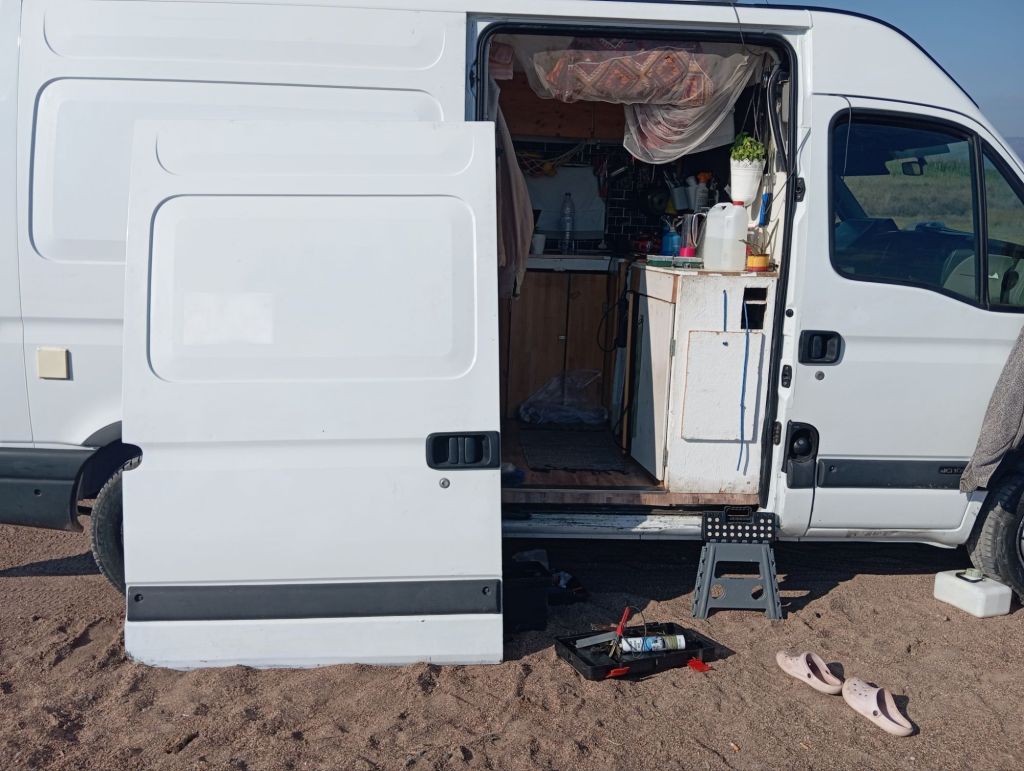 Schnell alle Luken schließen ist der Plan, damit es nicht reinregnet und plötzlich fliegt die Tur raus.
