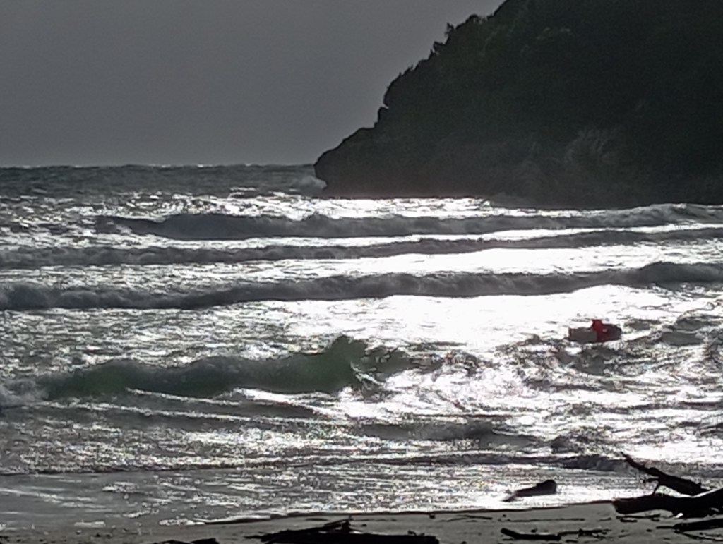 Jede Woge abertausende Kilo pechschwarzes Etwas, dass den Strand in beängstigender Schönheit erstrahlen lässt. Und die Wolken am Himmel verdunkeln die Sonne, damit sie nicht den düsteren Eindruck mit freundlichem Licht verwässern solle.