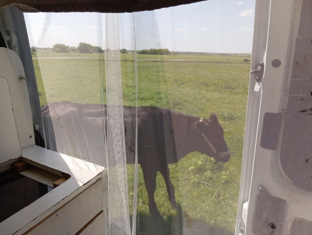 A environ 200 mètres de nous, il y a une vingtaine de voitures de pêcheurs et d’autres personnes qui partent en week-end et on n’entend pas un mot. Les abeilles, les sauterelles et le coassement des grenouilles au loin sont plus bruyants que les humains.
