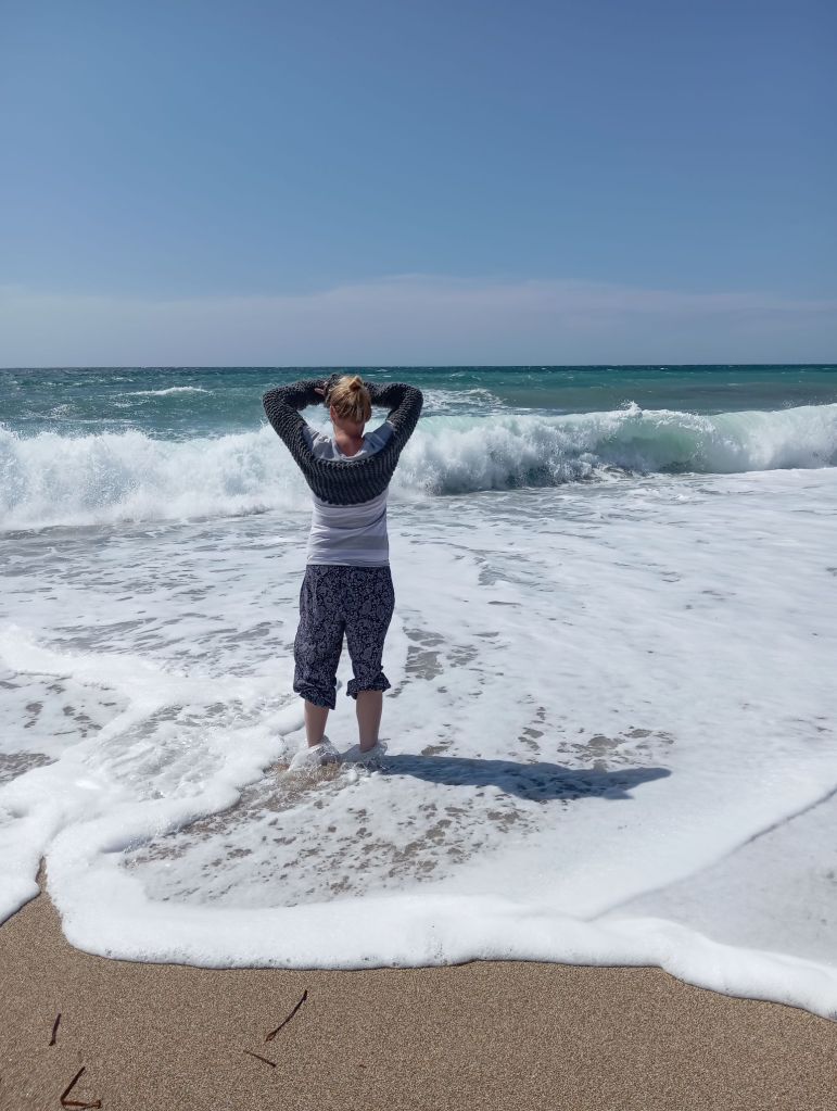 Getting water and bread for the last time, watching Greeks strolling around and holidaymakers chilling out. Enjoying the peace and quiet, even when the waves are raging.