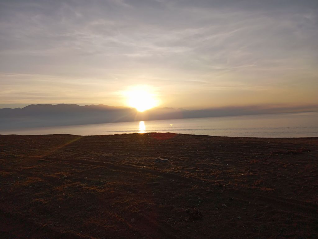 (down below in english) An unserer Wagenburg am Strand entsteht jeden Morgen die Welt. Man hört nur das Rauschen der Wellen, hin und wieder einen Jogger hecheln und die kleinen Vögel, die bald nach Deutschland fliegen. Und alles vor einem Himmel, der auf einer kleinen Nebeldecke ruht, aus denen Berge erwachsen und die einen sanften übergang zu Wolken bilden, hinter denen gegen halb acht die Sonne erscheint. Jeder hier, der Computerspezialist aus England, die Portugiesin, für die unsere Fluchtnacht nur ein Schauer war, sowie die ehemalige Bankkauffrau, die nicht aus ihrem Mercedes an in das neue Wohnmobil ihrer Freundes ziehen mag, ist still. Man und Frau sitzen oder liegen im jeweiligen Bett und genießt das allmorgendlich Ritual der Weltentstehung. Worte, so scheint es, sind zu gewöhnlich für so ungewöhnlich schöne Momente. Vielleicht werden sie auch wie von mir in einen Blog getippt, aber nicht gesprochen. Die Ruhe ist laut genug für den ersten Kaffee. Hier haben die Augen noch Zeit, das sehen zu lernen, verfolgen die Möwen über dem Meer oder hängen an Morgentau von Pflanzen, die auf grünen Hälsen das Sonnenlicht inhalieren. Griechenland hat Zeit, spürt man hier, wo man sich überflüssiger Zivilisation entzieht. Hier macht keiner das Radio an, um die Nachrichten zu hören, oder schimpft, dass man gleich arbeiten muss. Hier nickt man sich zu und nimmt sich die Zeit für unbeschreibliches Frühlingserwachen. Hier ist kein Platz für Ablenkung, den hier will man das erleben was ist und alles, was nicht urwüchsig ist stört. Hier bringt man sich Nussecken, flickt Kleider oder schreibt, nur damit alles so bleiben kann wie es ist. 2023, 24 und 25. Hier gibt es keine Zahlen, sondern nur ein Jetzt. Immer wieder und immer wieder einmalig und selbst das ist schon zu viel Schönheit für zwei Augen und eine Seele.