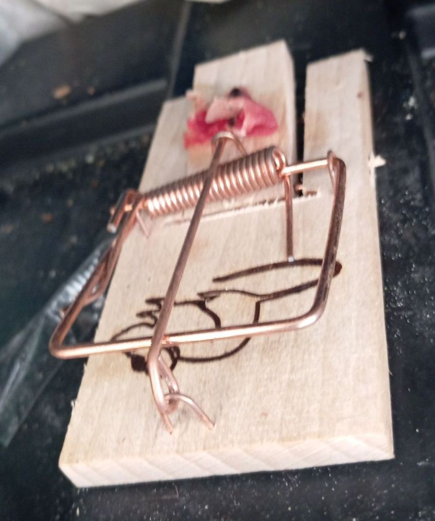 Así que actualizamos nuestra tecnología Frontentec y compramos ratoneras mutilingües (dibujos en lugar de palabras) y las colocamos en lugares estratégicamente seguros.